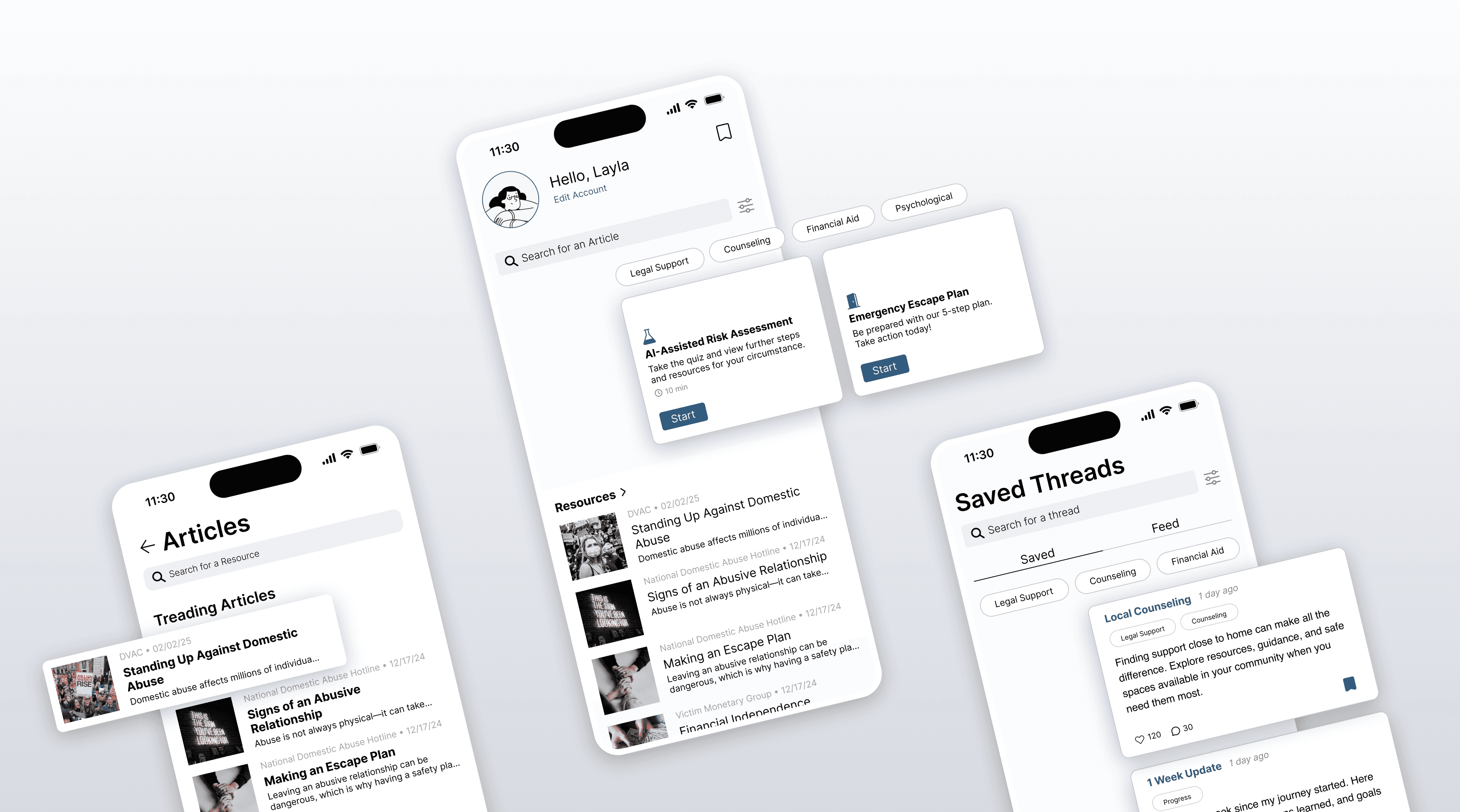 I learned the importance of working with what you have. Since my team and I couldn’t safely interview users face-to-face, we had to get creative—pulling insights from survivor stories, academic research, and real-world tools like the Danger Assessment. It pushed us to be resourceful and thoughtful with every choice. We kept our research limitations in mind every step of the process.